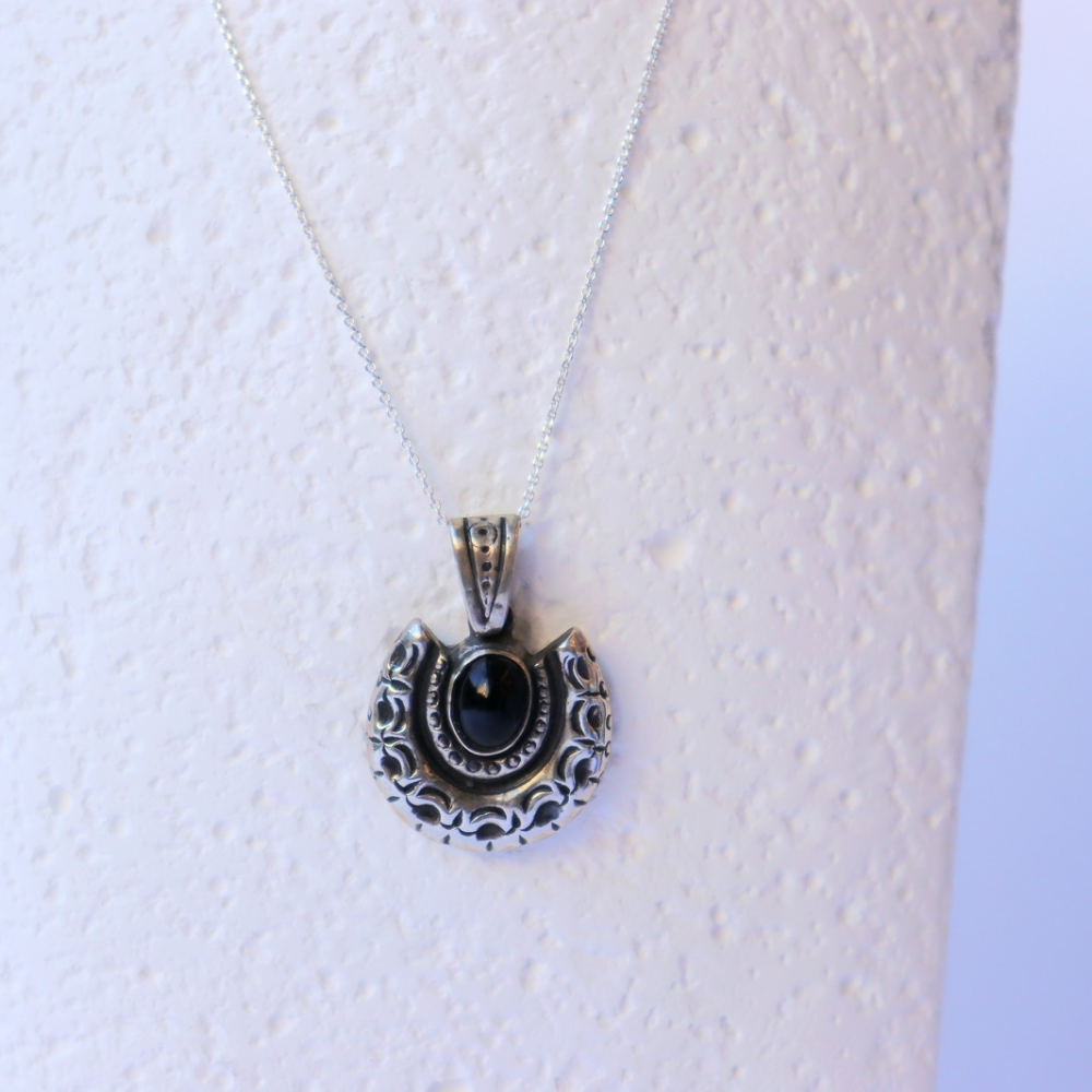 Ασημένιο μεταγιόν με γρανάδα & μαύρο όνυχα