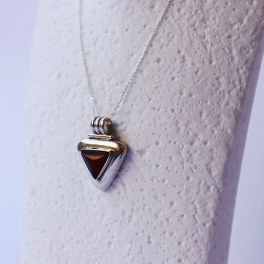 Χειροποίητο ασημένιο minimal μεταγιόν με ημιπολύτιμη πέτρα lapis σε καφέ χρώμα