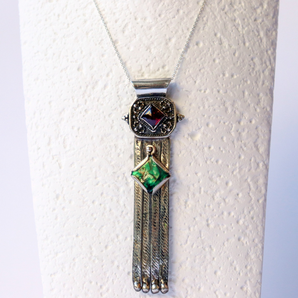 Υλικό: ασήμι, ημιπολύτιμες πέτρες (περιλαμβάνεται ασημένια αλυσίδα 45cm)