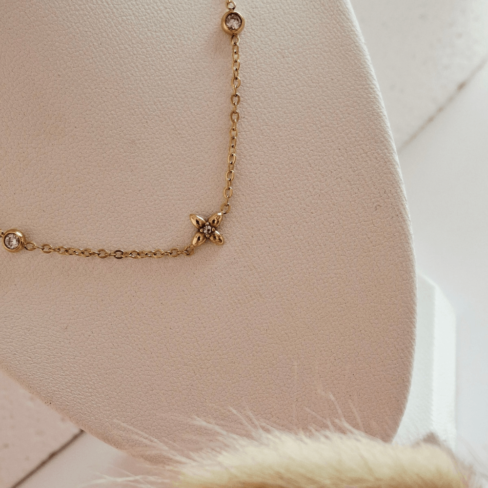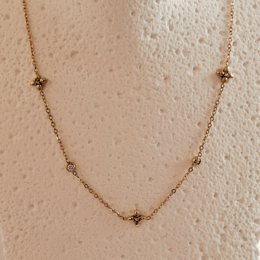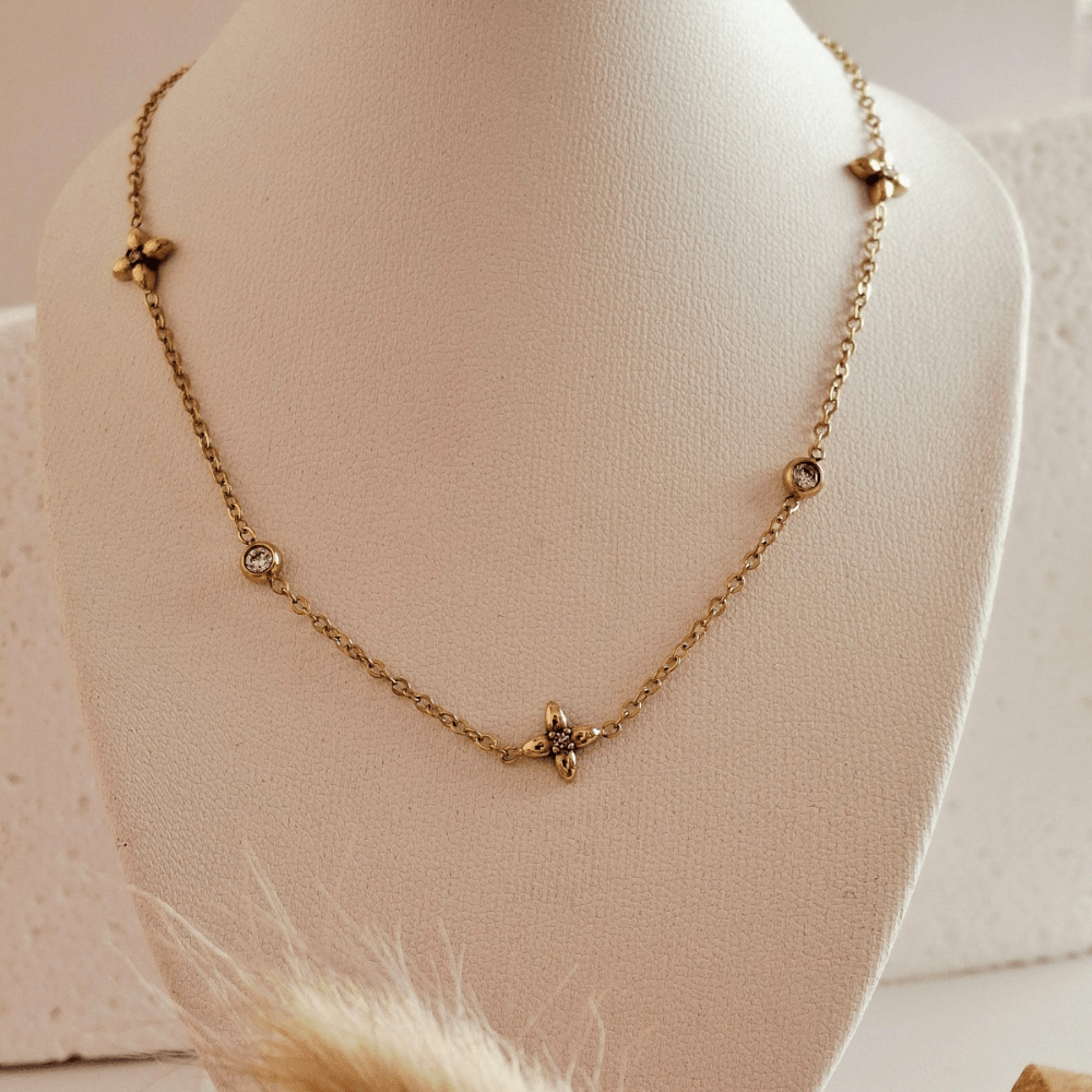 Ρομαντικό ατσάλινο κολιέ με μικρά ρομβάκια και κρύσταλλα